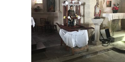 Une statue de saint Andéol sur le fronton de l’église de Camaret