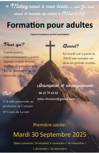 Formation pour tout chrétien désireux d’approfondir sa foi, de développer sa vie spirituelle, pour les jeunes baptisés, les « recommançants ».